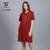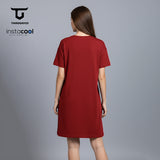 THIRDDAY Dress Bahan Kaos Wanita "half face" maroon LTH24