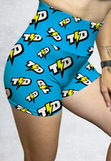 LB105 Booty Shorts Legging Gym Bermotif "td bolt light blue" High Waist Wrap