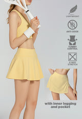 LB126 Rok Padel Tenis Wanita Legging inside Skort ada Kantong TdBolt pastel yellow