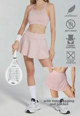 LB127 Rok Padel Tenis Wanita Legging inside Skort ada Kantong TdBolt pastel pink