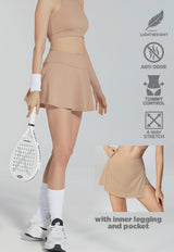 LB129 Rok Padel Tenis Wanita Legging inside Skort ada Kantong TdBolt coklat muda