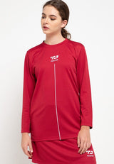 Td Active LS010 l-s Raglan Merah Ati Kaos Olahraga Wanita