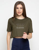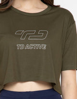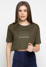Td Active LS017 Sport CL Crop Loose Wanita Dateng Outline Hijau Army