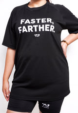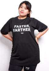 LSB12 kaos olahraga tangan pendek unisex lari running FASTER FARTHER hitam