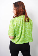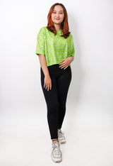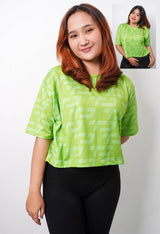 Td Active LSB21 baju crop zumba wanita quickdry fullprint hijau stabilo