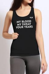 LSB55 kaos sleeveless kutung sport drifit running lari gym "my blood" hitam