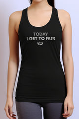 LSB60 kaos sleeveless kutung sport drifit running lari gym "i get to run" hitam