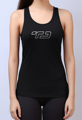 LSB64 tank top kutung wanita dri fit sleeveless gym running olahraga "td outline chest" hitam