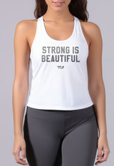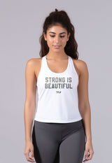 LSB96 Kaos Olahraga Gym Wanita Tanktop "strong is beautiful" Putih
