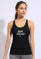 LSC20 Tank top olahraga wanita kutung sleeveless lari gym running tenis padel "run squad" drifit hitam