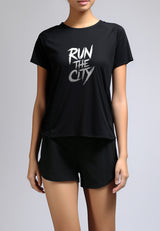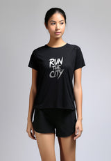 LSC27 Kaos Lari Wanita Lengan Pendek instadry "Run the City" hitam