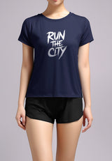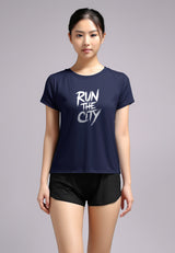 LSC31 Kaos Lari Wanita Lengan Pendek instadry "Run the City" navy