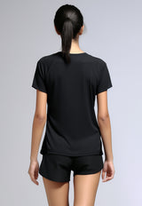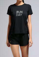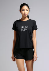 LSC32 Kaos Lari Wanita Lengan Pendek instadry "Run Day lines" hitam