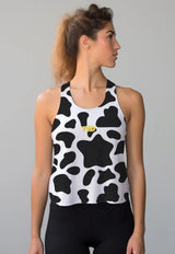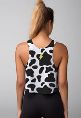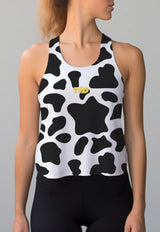 LSC67 Crop Tank Olahraga Gym Crossfit Lifting Motif Abstrak "cow" hitam putih