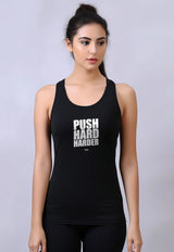 LSC70 Tank Top Olahraga Wanita drifit "push hard harder" hitam