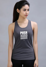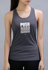 LSC71 Tank Top Olahraga Wanita drifit "push hard harder" abu