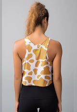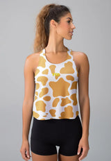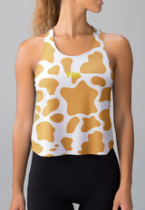 LSC72 Crop Tank Olahraga Crossfit Weightlifting Gym Motif Cow khaki
