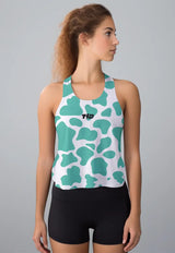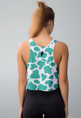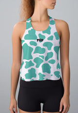 LSC73 Crop Tank Olahraga Crossfit Weightlifting Gym Motif Cow hijau turquoise