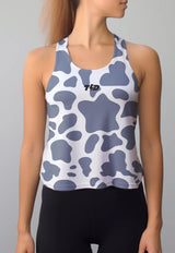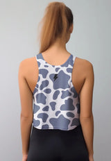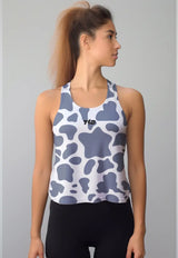 LSC75 Crop Tank Olahraga Crossfit Weightlifting Gym Motif Cow abu