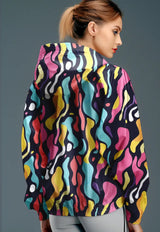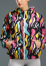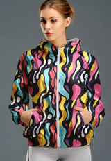 LSC83 CJK Jaket Olahraga Parasut Wanita Waterproof Motif "colorful lints" hitam