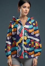 LSC85 CJK Jaket Olahraga Parasut Wanita Waterproof Motif "snake ladder" warna warni
