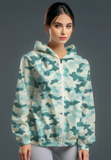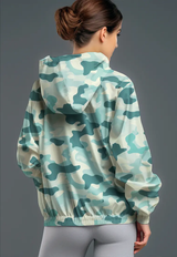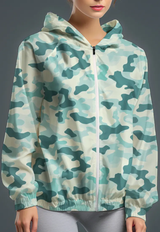 LSC90 jaket lari wanita parasut motif "green white camo" putih multicolor