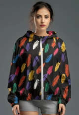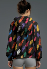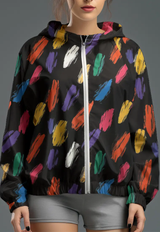 LSC93 jaket lari wanita parasut motif "colorful brush" hitam multicolor