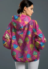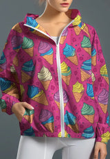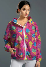 LSC99 jaket lari wanita parasut motif "ice cream pink" pink multicolor
