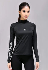 LSD03 inner olahraga lengan panjang stretch jersey "move fast arm" hitam
