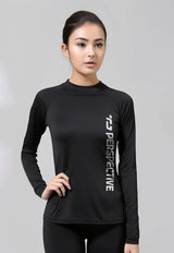 LSD12 baju lari wanita lengan panjang jersey stretch "td perspective" hitam