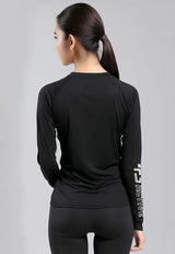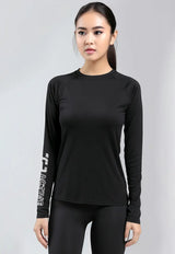 LSD16 baju lari wanita lengan panjang jersey stretch "td active outline" hitam