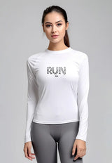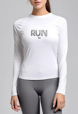 LSD17 baju lari wanita lengan panjang jersey stretch "run dots" putih