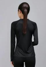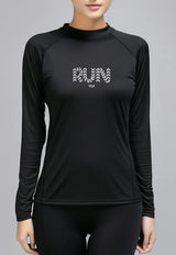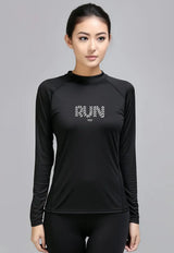 LSD18 baju lari wanita lengan panjang jersey stretch "run dots" hitam