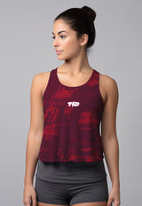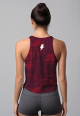 LSD62 Tanktop Crop Gym Running "chili maroon Brush abstrak" superairdrylite