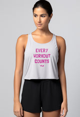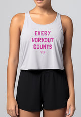 LSD68 Kaos Kutung Tank Top Crop Wanita Olahraga "every workout counts" putih