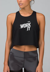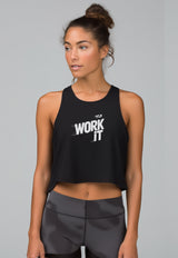 LSD70 crop tank olahraga anti bau stretch "work it" hitam