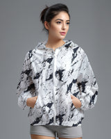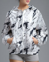 LSD74 Jaket Lari Olahraga Wanita Parasut motif "white marble" putih