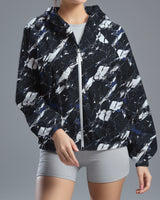 LSD75 Jaket Lari Olahraga Wanita Parasut motif "marble" hitam