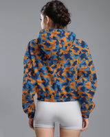 LSD76 Jaket Lari Olahraga Wanita Parasut motif "blue orange camo" multicolor