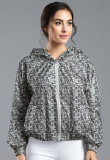 LSD79 Jaket Lari Olahraga Wanita Parasut motif "pin abstract" krem