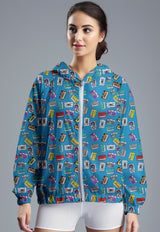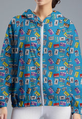 LSD80 Jaket Lari Olahraga Wanita Parasut motif "cassette tape" turquoise