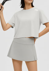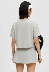 Potongan crop fit memberikan kesan modern dan trendi, sementara sifat semi-stretch membuat kaos ini fleksibel mengikuti gerakan, tanpa mengurangi bentuk yang tetap rapi di badan. Cocok untuk dipadukan dengan legging high-waist atau rok olahraga.