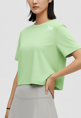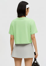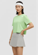 Potongan crop fit memberikan kesan modern dan trendi, sementara sifat semi-stretch membuat kaos ini fleksibel mengikuti gerakan, tanpa mengurangi bentuk yang tetap rapi di badan. Cocok untuk dipadukan dengan legging high-waist atau rok olahraga.