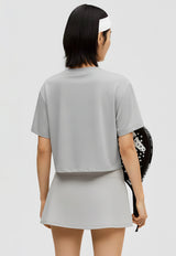 LSE20 Kaos Padel Top Crop T Shirt Olahraga Dryfit Wanita silver grey