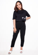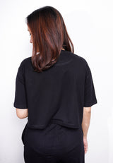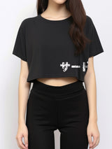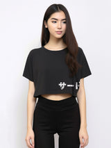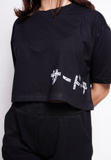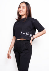 LTE58 oversize wanita crop hitam katakana scribble