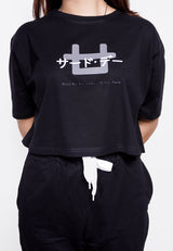 LTE67 olc crop top oversize hitam logo back katakana front hitam