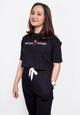 LTE68 olc crop top oversize loose hitam never doubt hitam