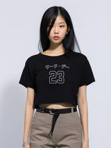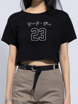 LTE71 kaos oversize crop dance OLC basket katakana 23 hitam