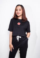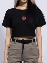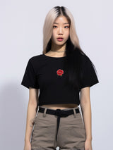 LTE73 oversize crop top bunga OLC merah dateng rose hitam