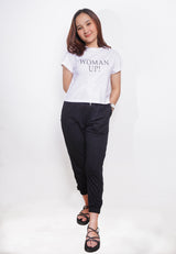 LTE78 crop oversize tulisan WOMAN UP RCP putih